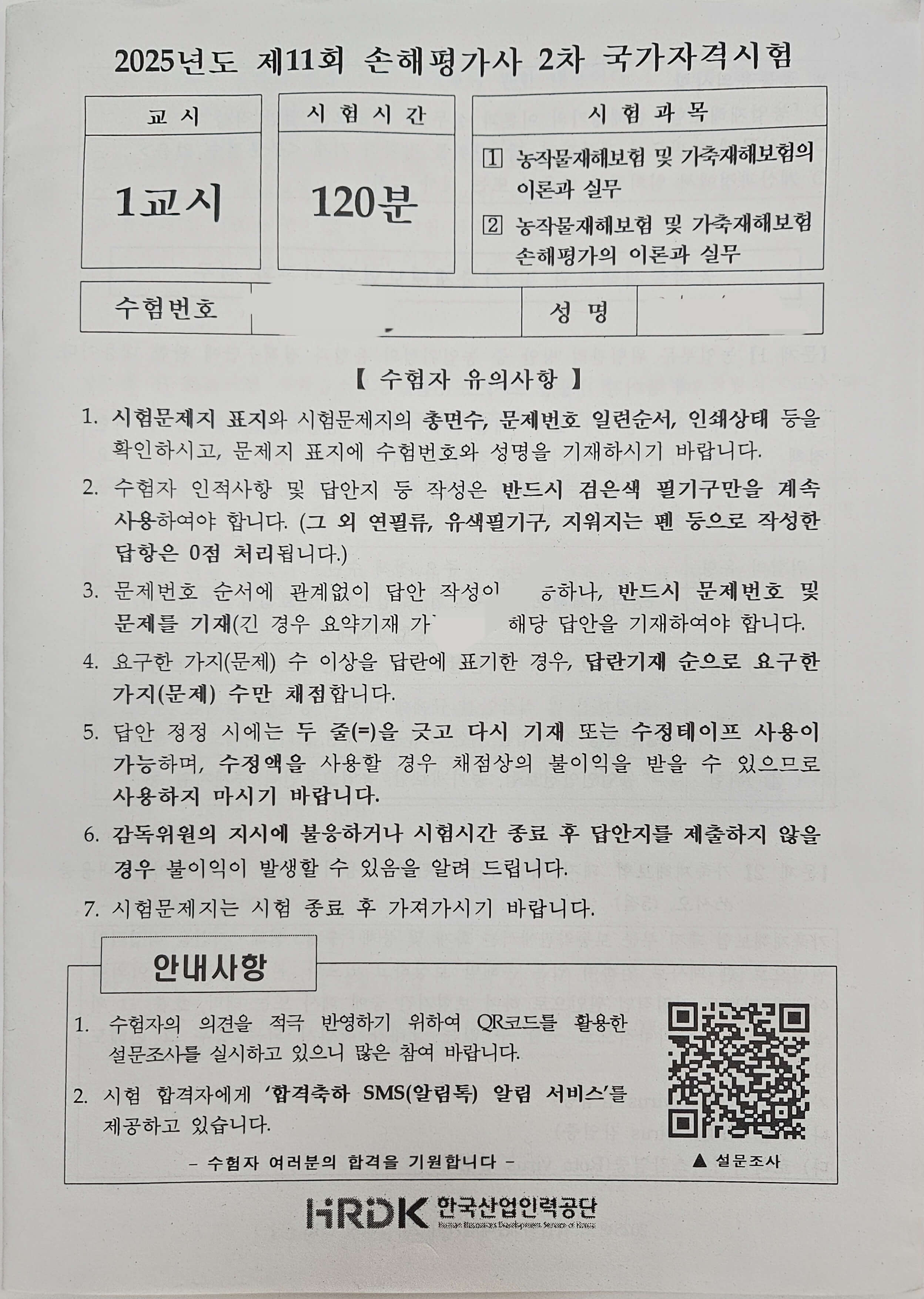 2025년도 11회 손해평가사 2차 국가자격시험을 마치고, 느낀 점을 공유해 보려고 합니다. 시험을 치른 지 벌써 1주일이 넘게 지났네요. 저는 이번 2025년 1차, 2차를 처음으로 치렀습니다. 첫 해이자 마지막 해가 될 것 같은데요. 그 이유는 나중에 말씀드리고, 시험의 난이도는 생각보다 훨씬 어려웠던 것 같습니다.