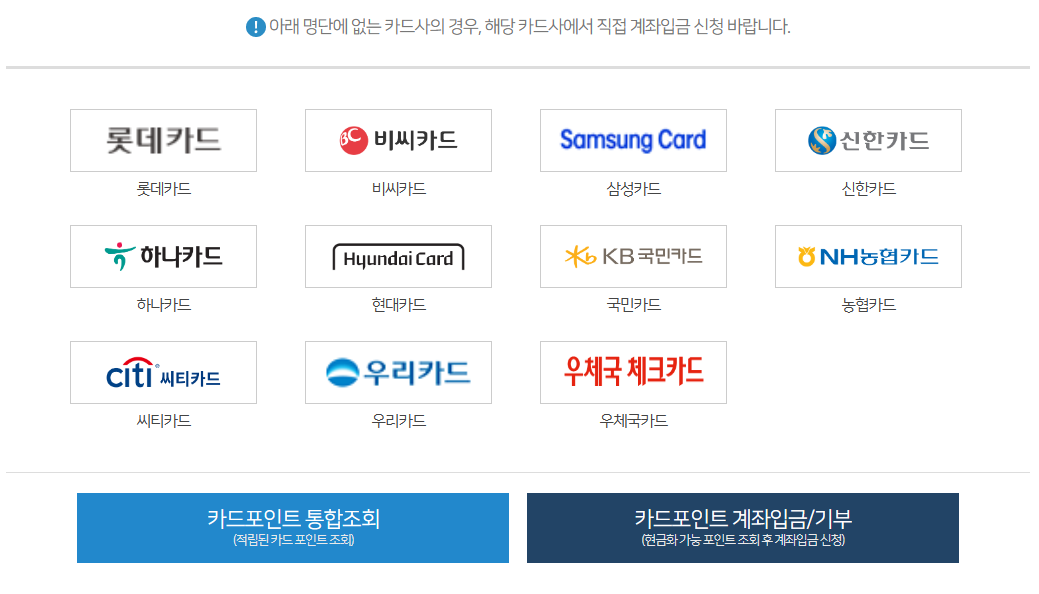 - 삼성카드, 씨티카드, 우체국카드, 롯데카드